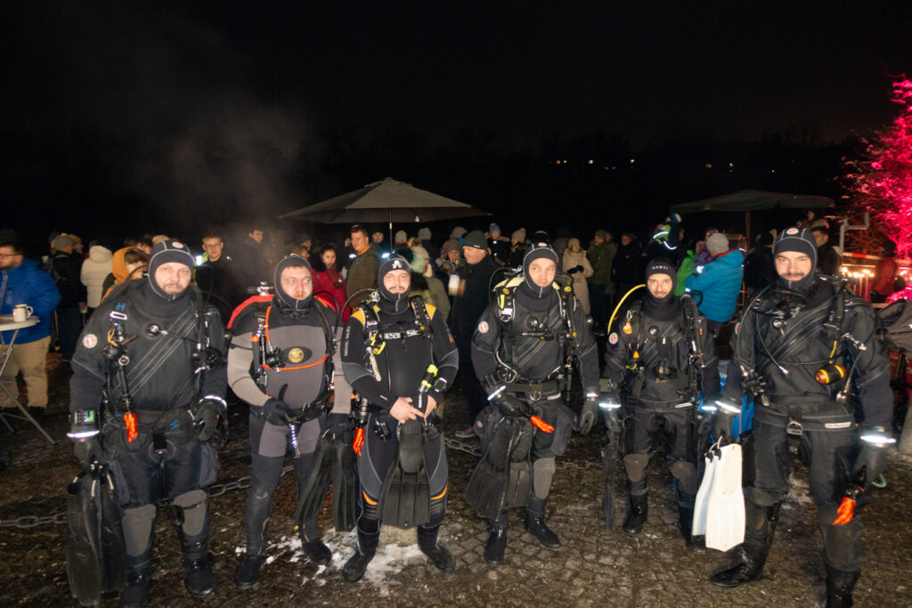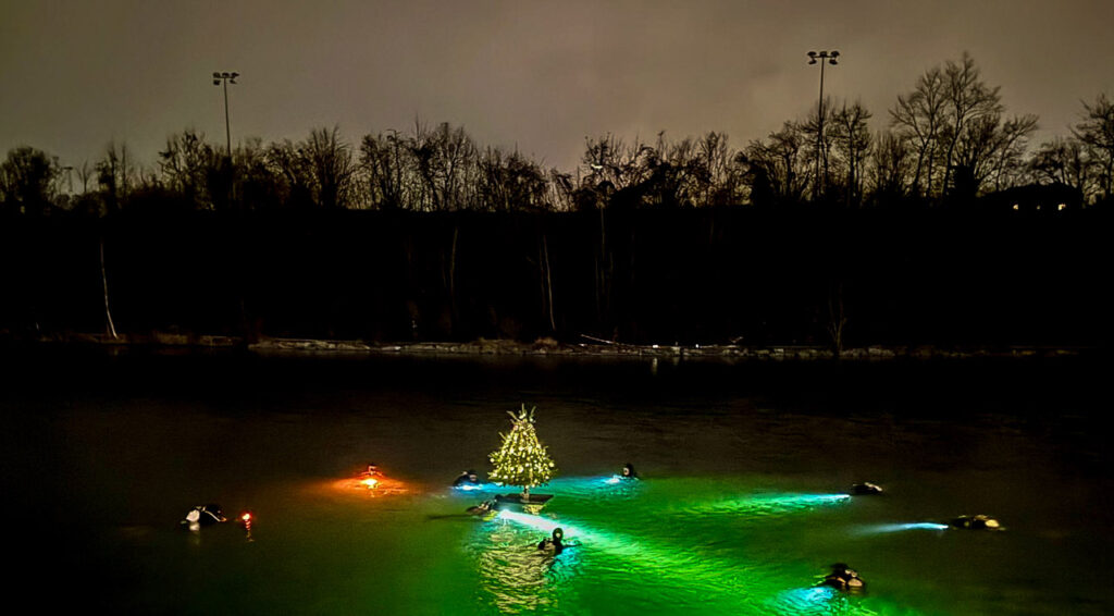 Taucher und Fackelschwimmer der Wasserrettung, der Feuerwehr oder von Wassersportvereinigungen tauchen eigens präparierte beleuchtete Christbäume aus Seen und Flüssen. Damit soll allen im Wasser verunglückten Personen gedacht werden.