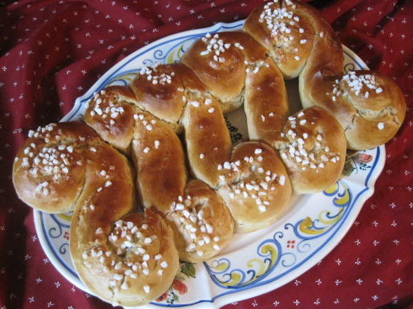 -Patenspenden (Striezel, Brezel mit einem Geldstück in der Mitte o.ä.)