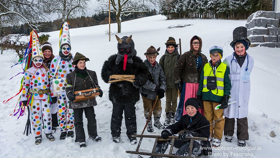 Meist sind die Zechen träger des Maschkerer-Brauches, in den letzten Jahrzehnten sind aber auch verkleidete Kindergruppen unterwegs.